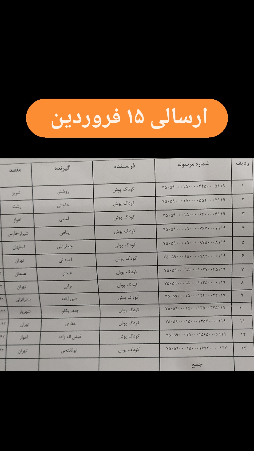 مشاهده لیست ارسال